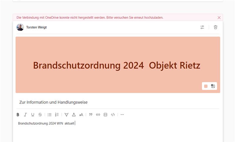 Bei dem Versuch eine Datei bei einem Teams post anzuhängen, kann folgender Fehler auftreten: